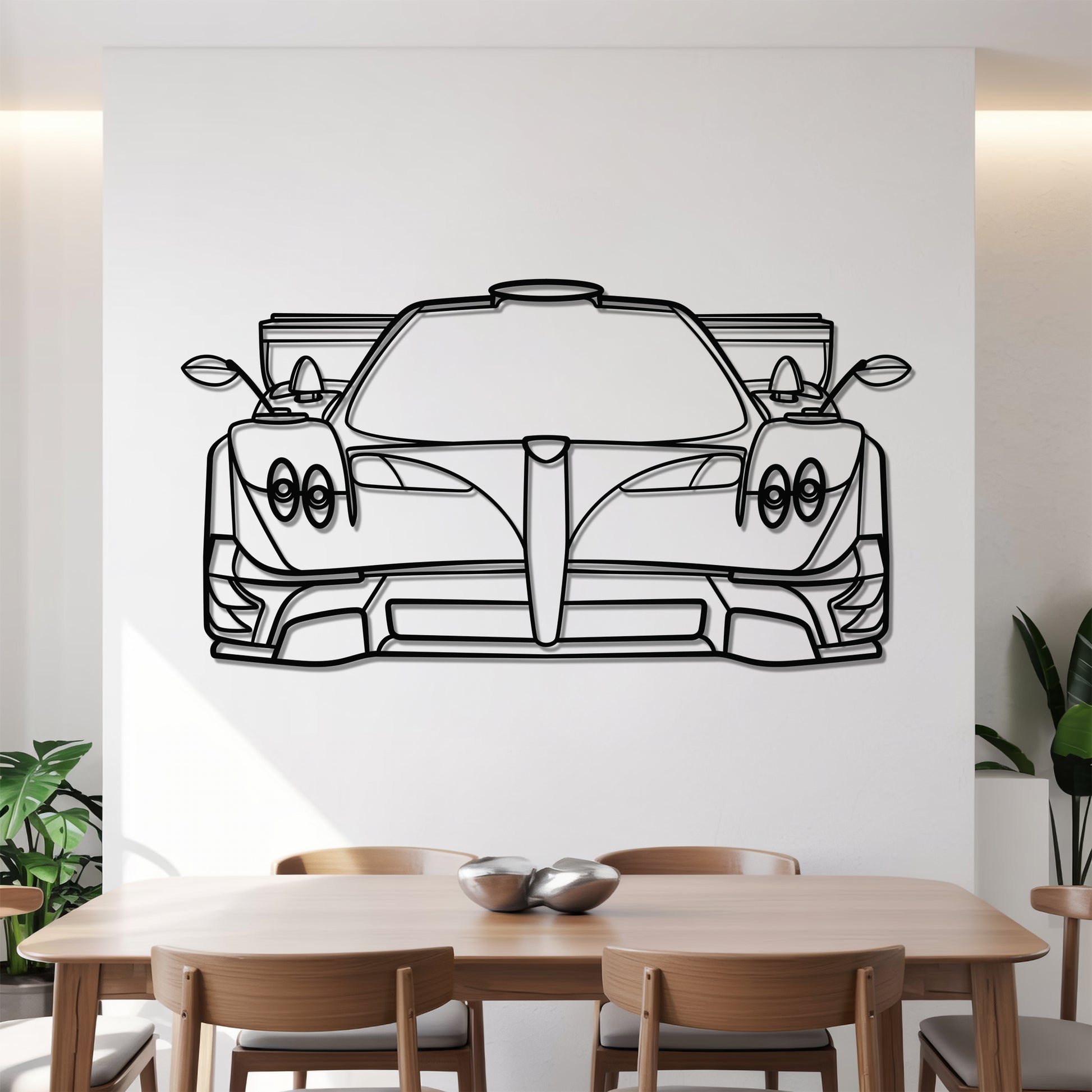 Level up your wall with this Zonda Revolucion Front metal silhouette wall art – a real head-turner for your office, living room, or garage. A must-have for every car enthusiast, bringing not just style, but serious attitude to your space.